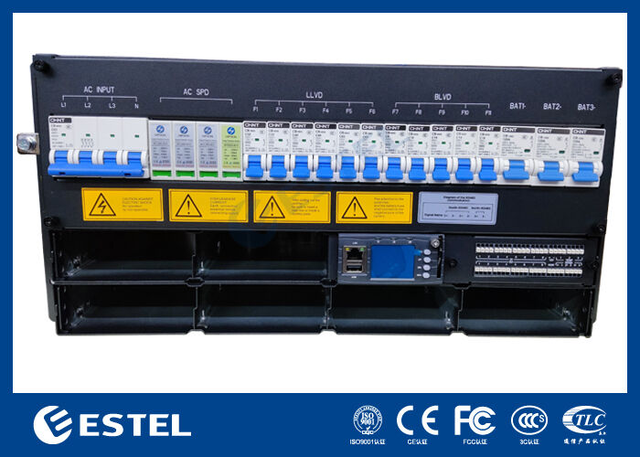 Ο πίνακας διανομής συνεχούς ρεύματος είναι εξοπλισμένος με διακόπτες κυκλωμάτων μπαταρίας 3*125A/1P και περιλαμβάνειLLVD και aΛειτουργία BLVD για ασφαλή και ευέλικτη διαχείριση ενέργειας.και 8 ρυθμιζόμενα αναμεταδοτήματα συναγερμού ξηρής επαφήςΗ απομακρυσμένη παρακολούθηση και διαχείριση είναι δυνατή μέσω των διεπαφών RS232/485 και SNMP, ενώ μια ολοκληρωμένη οθόνη LCD επιτρέπει την τοπική προβολή και ρύθμιση της κατάστασης.